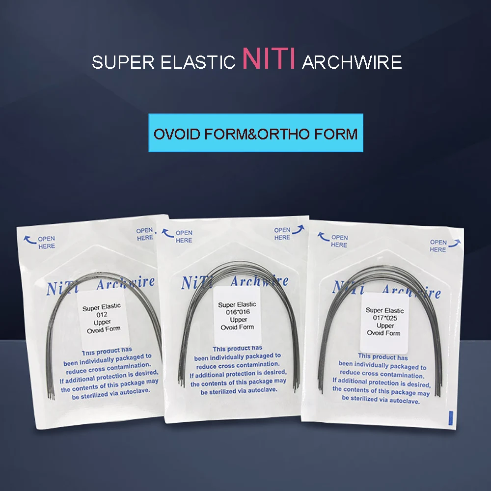 Congénere que las imágenes. Debido a HDCD Dental Store lucro este 10 unids/bolsa arco NITI Dental ortodoncia arco de alambre redondo y cuadrado forma Super elástico superior y inferior dentista herramientas ovoide forma